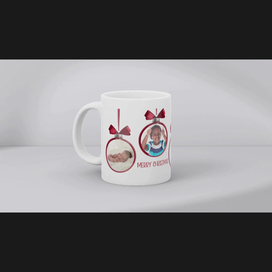 This personalized ornament ceramic mug can be personalized with four of your favorite photos. This mug is the perfect holiday gift or item to add to your holiday glassware collection. This mug also features a unique and eye-catching design that is sure to stand out making it a perfect gift for that someone special or for yourself.