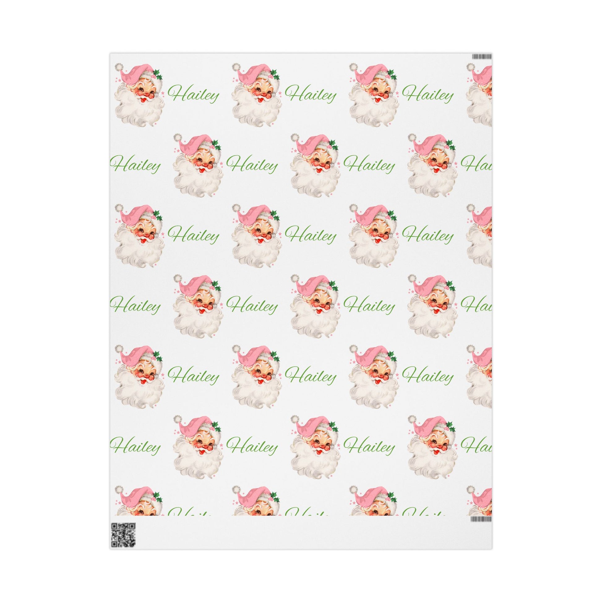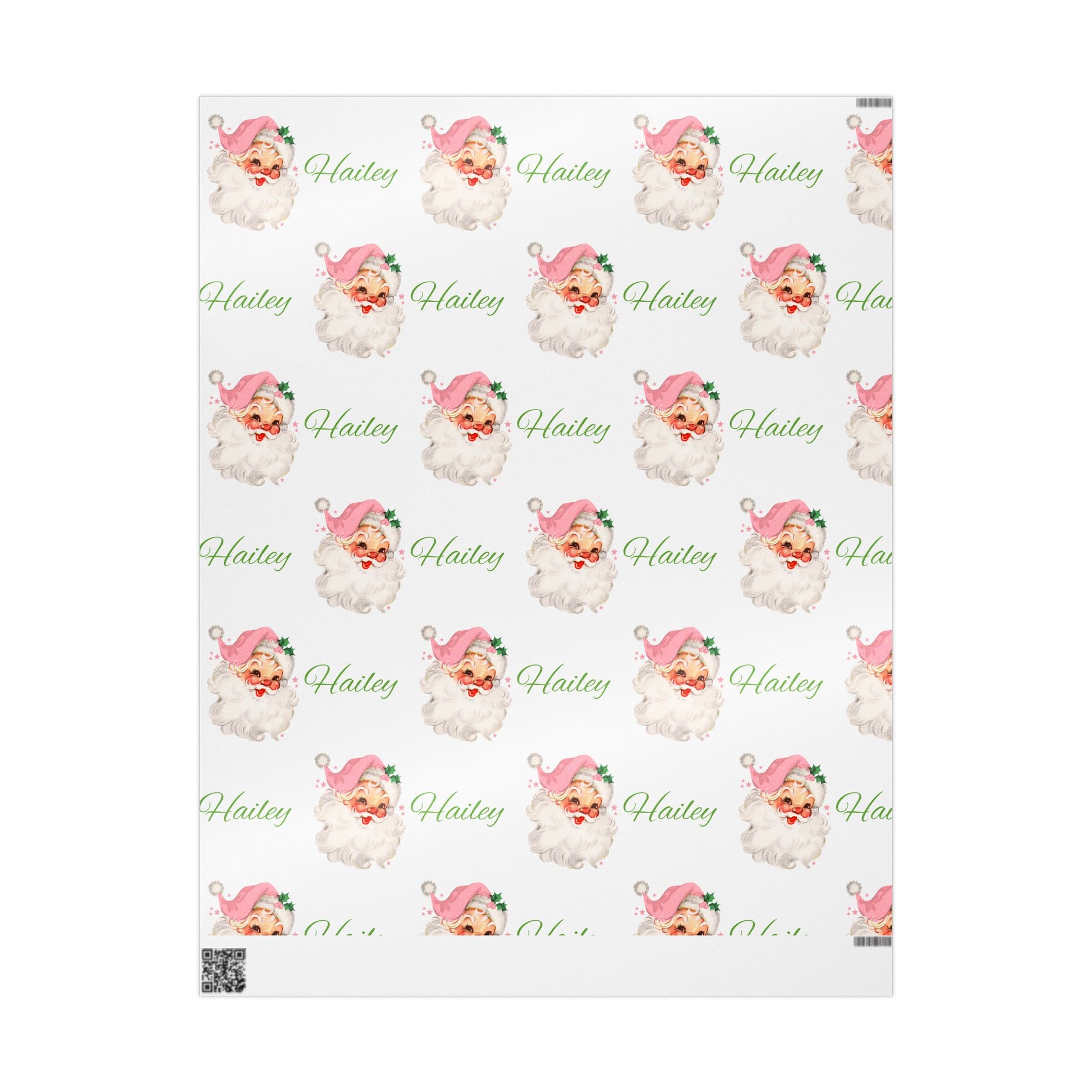 Personalized Vintage Pink Hat Santa Christmas Wrapping Paper