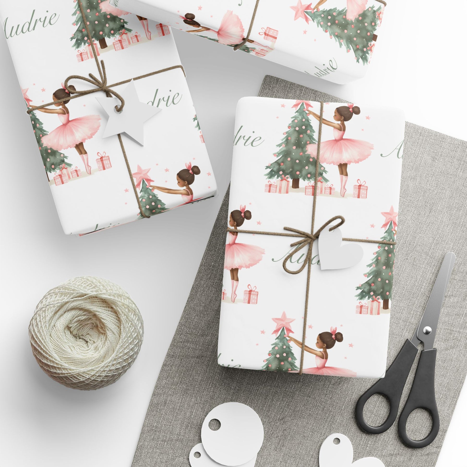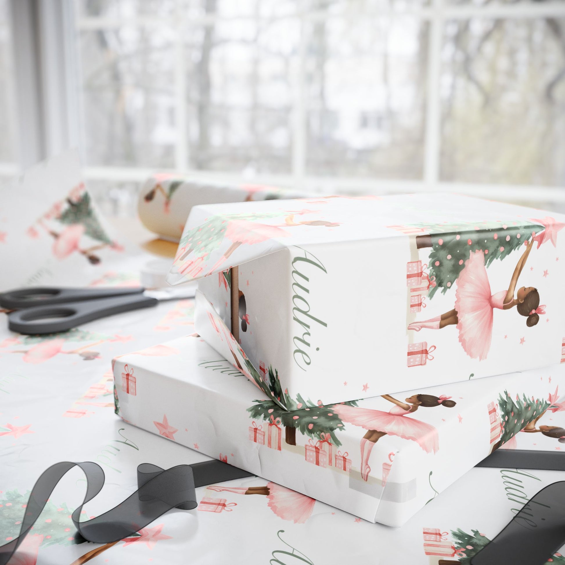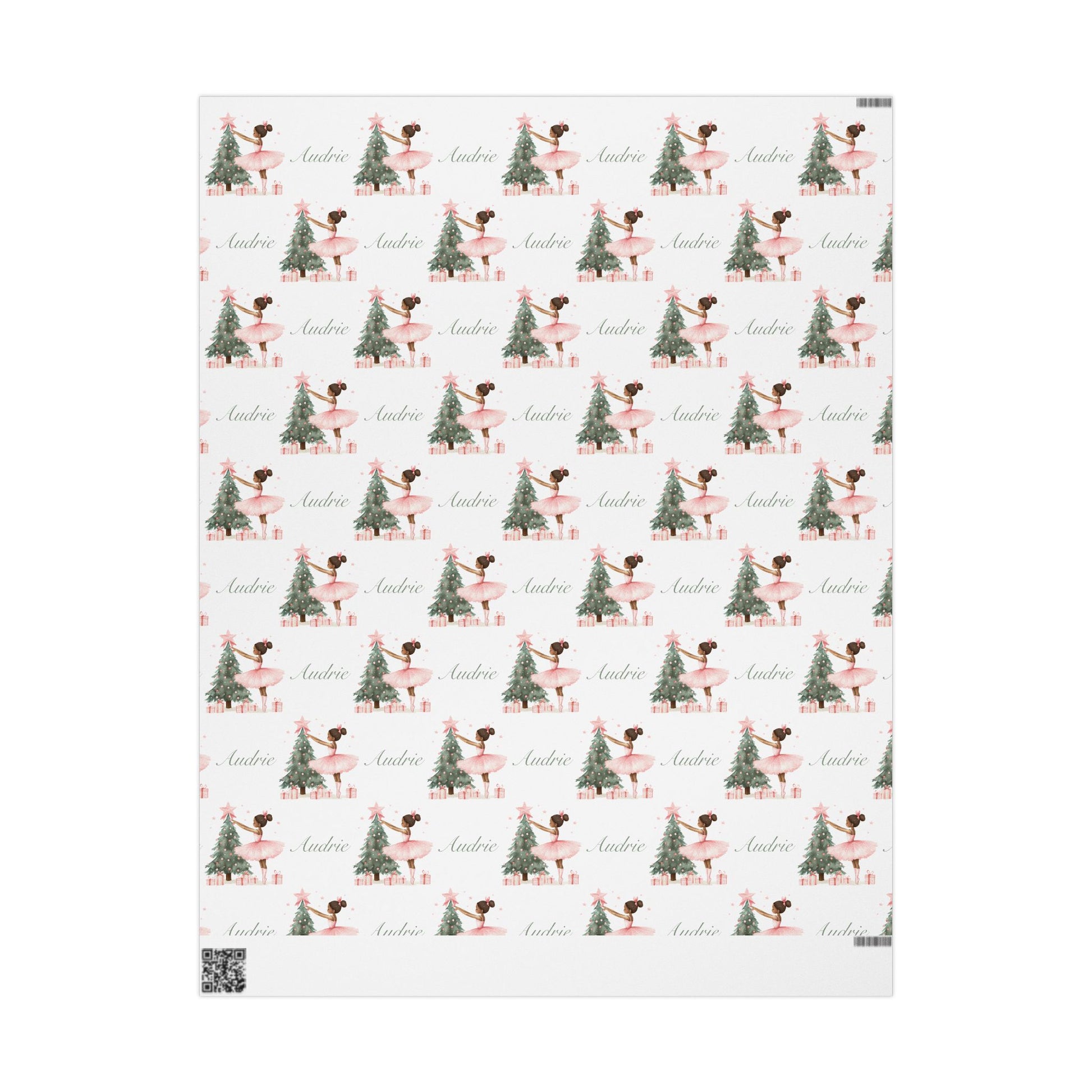 Personalized Pink Black Ballerina Christmas Wrapping Paper - White Background