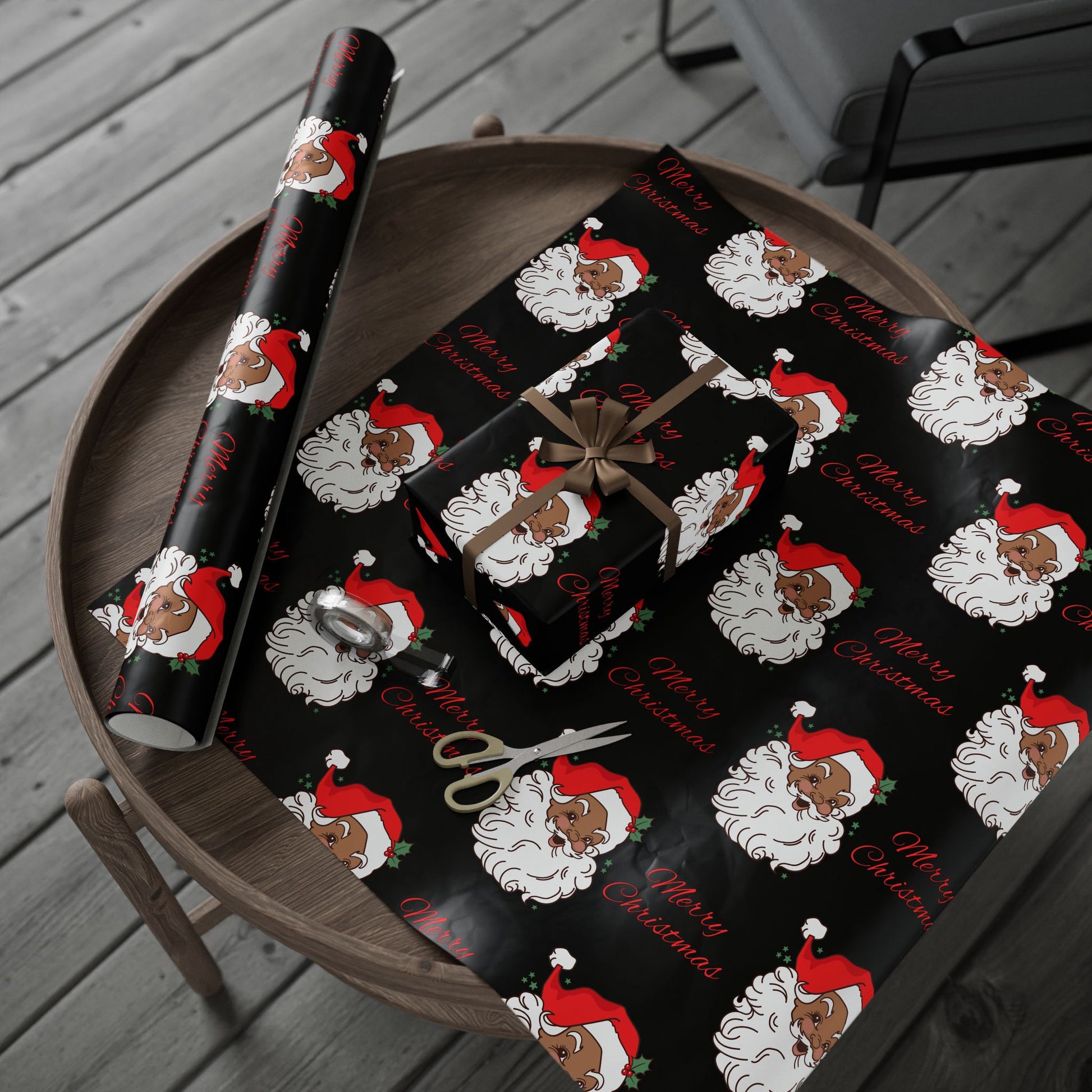 Vintage Red Hat Black Santa Christmas Wrapping Paper - Merry Christmas
